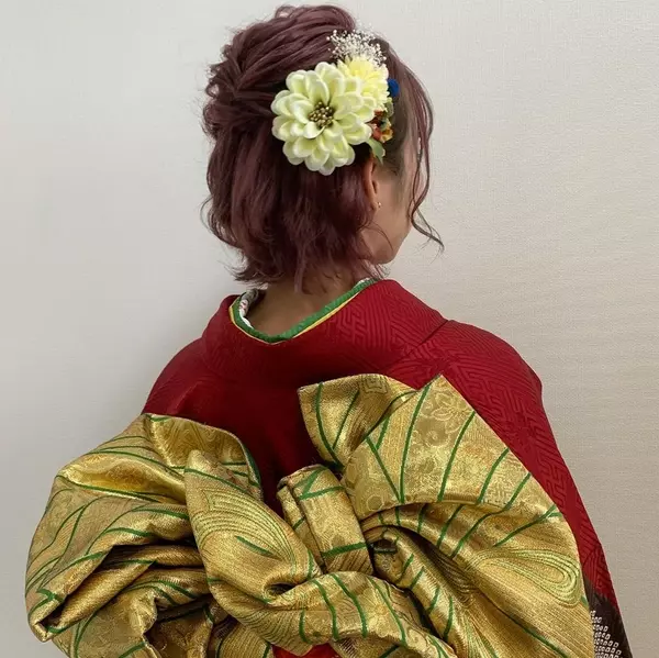 大人っぽい雰囲気と可愛いドライフラワーとレースが相性 玉ねぎヘアをサイドにまとめたアレンジ。 紐や水引きを使っておしゃれアレンジ 編み込みやロープ編みを組み合わせてどこから見ても華やかに仕上げたヘアアレンジ。 成人式まとめ髪アップス三つ編みサイドアップのヘアセット方法 成人式写真の三つ編みサイドアップのヘアセット方法は以下です。 やり方1:左右どちらかに髪を寄せて三つ編みをする 髪全体を左右どちらかお好きなほうに寄せて、三つ編みをします。 この時なるべくおくれ毛が出ないようにするのと、3つの束を均 成人式ヘアセットおすすめ1 シンプルなギブソンタックのヘアアレンジ! お花や、レースをたっぷり使ってガーリーな雰囲気がかわいいです♡顔周りはウェットな質感でルーズなおくれ毛でよりオシャレ度UP! 振袖に赤と白が使われていたので、ヘアアレンジで使うお花も赤と白をメイン